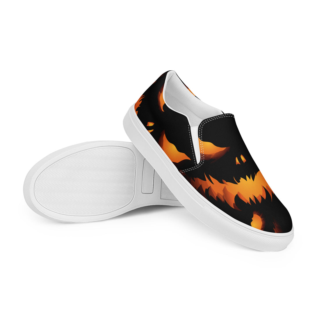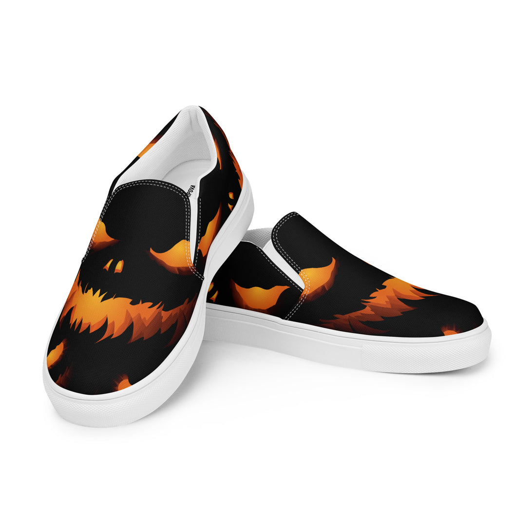 Step into shadows with Night of Pumpkins Slip-On Canvas Shoes, a ghostly parade of pumpkin faces that glow across the fabric like a midnight fright. These shoes feature a detailed design with menacing, carved grins and glowing eyes, stacked vertically for a spooky effect. Made with lightweight canvas and cushioned soles, they offer durability and comfort for daily wear. Perfect for Halloween strolls, casual outings, or eerie style, they elevate your look with haunting flair. Stalk with style and let your shoes spook with a playful haunt!