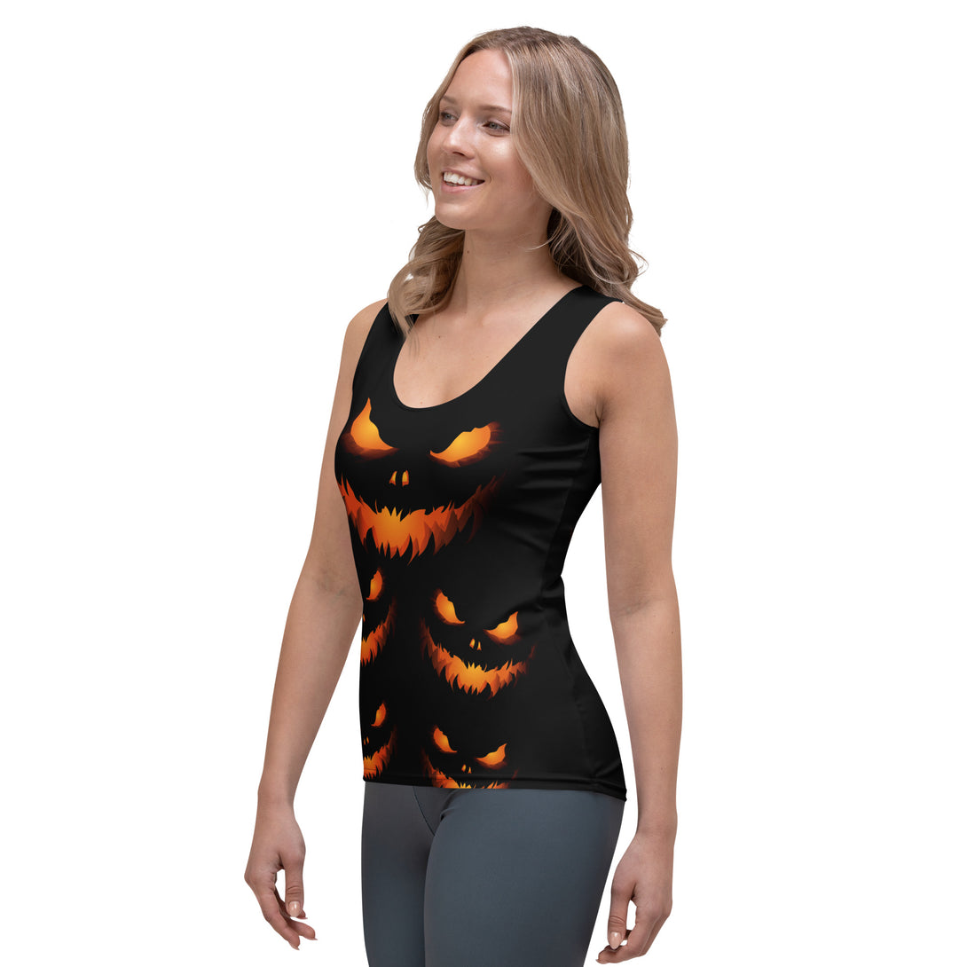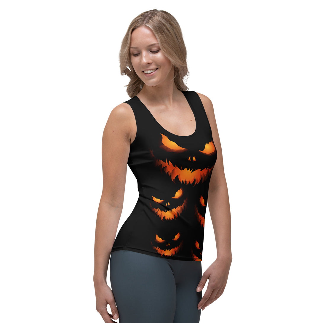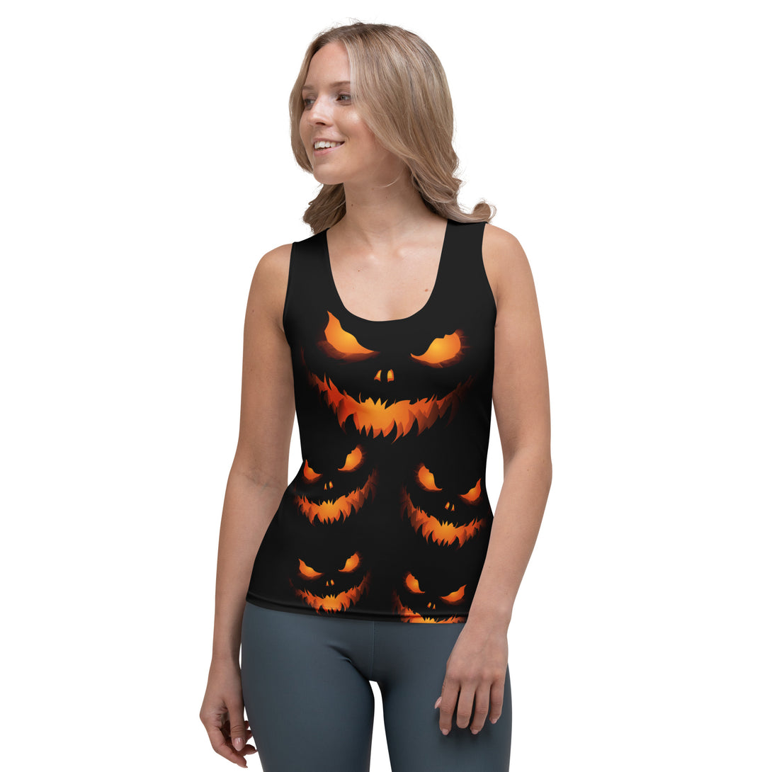 Spook into style with Night of Pumpkins Tank Top, a eerie cascade of pumpkin faces that loom across the fabric like a haunted harvest. This tank top showcases an intricate pattern with sinister, toothy smiles and luminous eyes, stacked for a festive fright. Crafted with breathable, stretchy material and a loose fit, it offers comfort for all-day wear. Ideal for Halloween events, workouts, or casual spooky days, it brings chilling charm to your wardrobe. Sway with spirits and let your tank top grin with a cheeky chill!