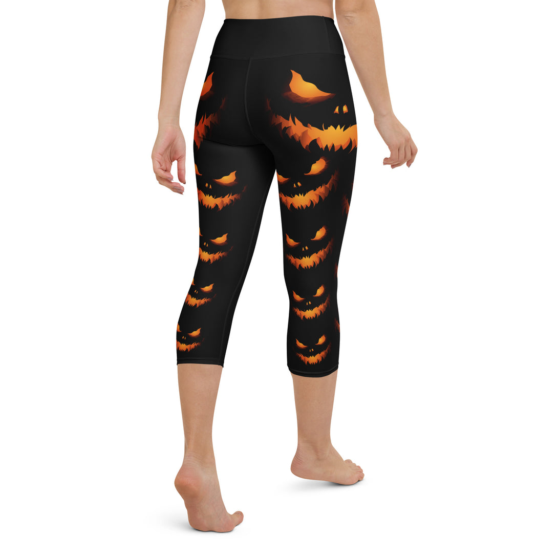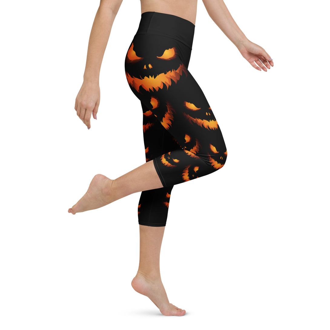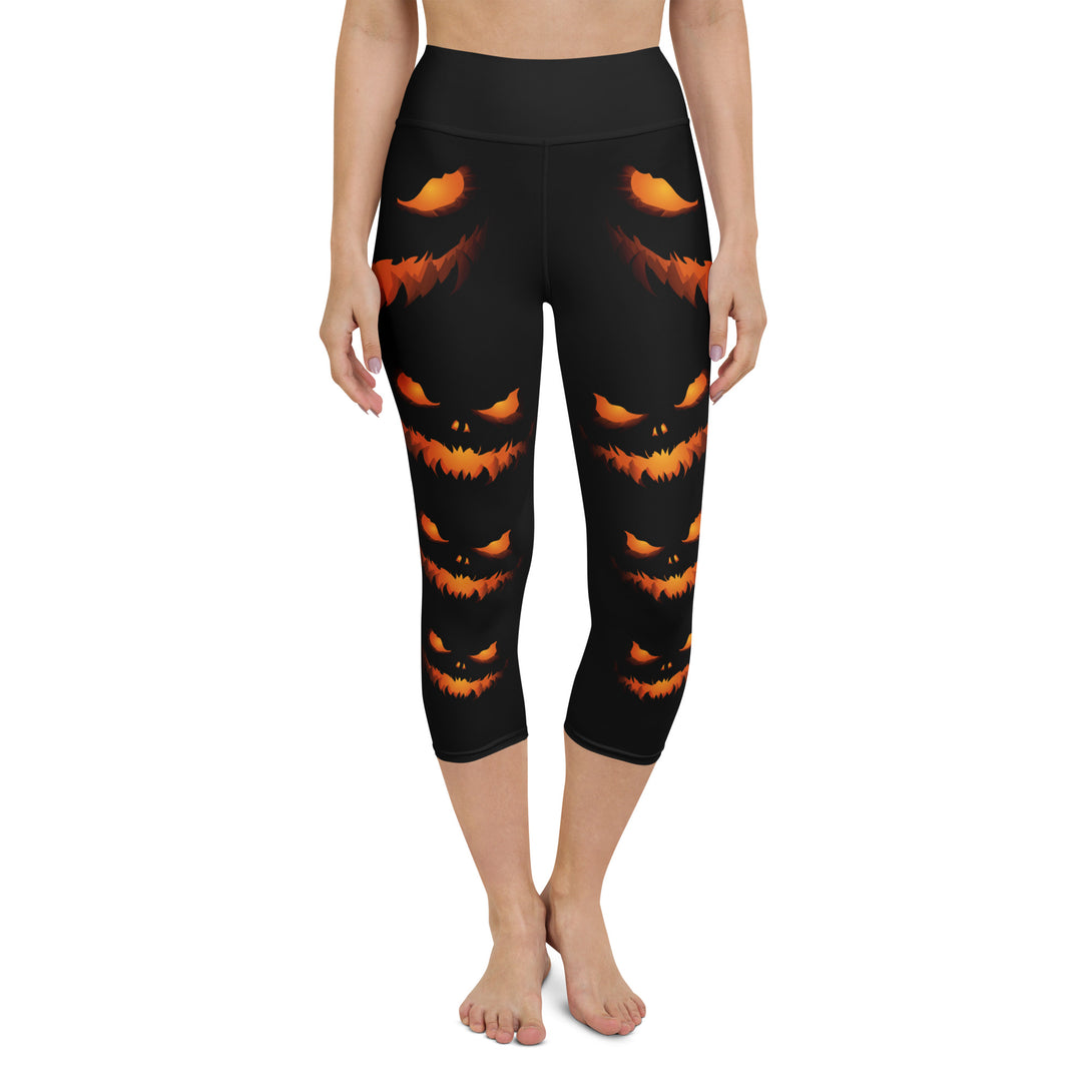 Drift into dark delight with Night of Pumpkins Yoga Capri, a eerie ensemble of pumpkin lanterns that glow across the fabric like a haunted trail. These capris display an intricate pattern with sinister, carved faces and luminous eyes, stacked to create a festive, spooky aesthetic. Crafted with soft, stretchy fabric and flat seams, they ensure comfort and support for yoga or stretching. Great for Halloween practice, outdoor spooky walks, or casual wear, they merge functionality with eerie flair. Stretch into shadows and let your yoga capri howl with a playful haunt!