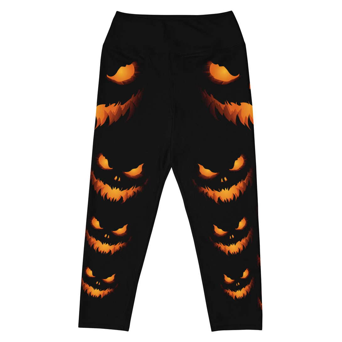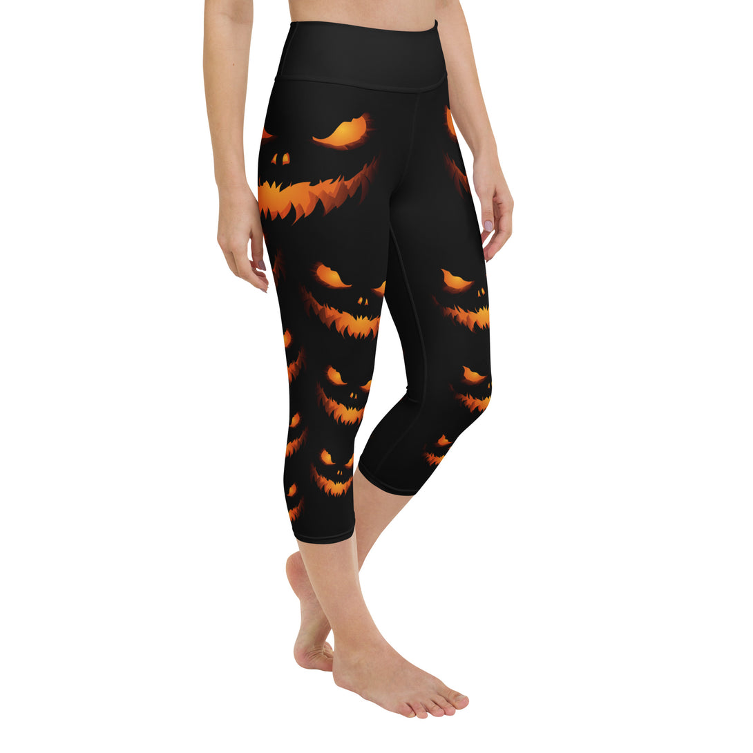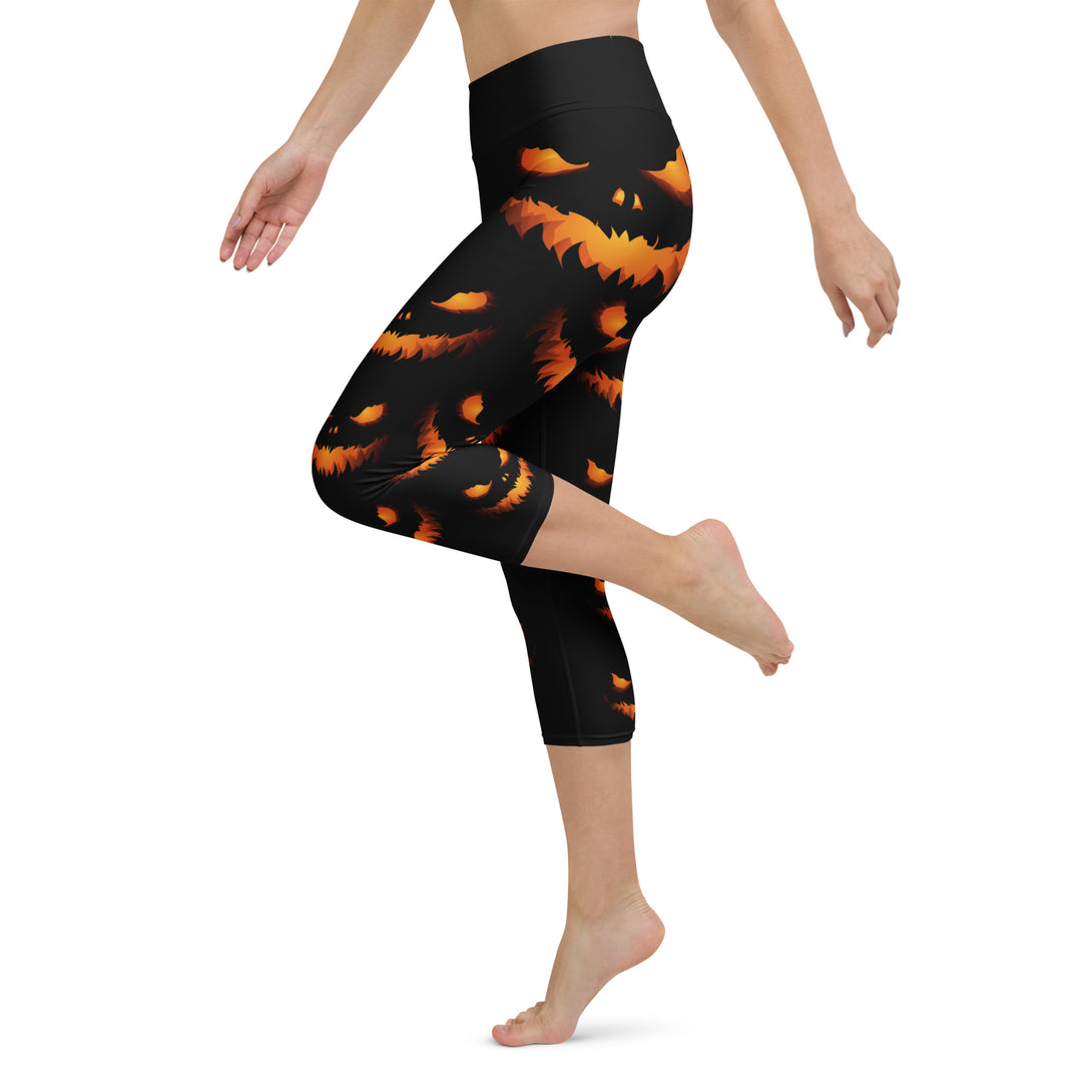 Drift into dark delight with Night of Pumpkins Yoga Capri, a eerie ensemble of pumpkin lanterns that glow across the fabric like a haunted trail. These capris display an intricate pattern with sinister, carved faces and luminous eyes, stacked to create a festive, spooky aesthetic. Crafted with soft, stretchy fabric and flat seams, they ensure comfort and support for yoga or stretching. Great for Halloween practice, outdoor spooky walks, or casual wear, they merge functionality with eerie flair. Stretch into shadows and let your yoga capri howl with a playful haunt!