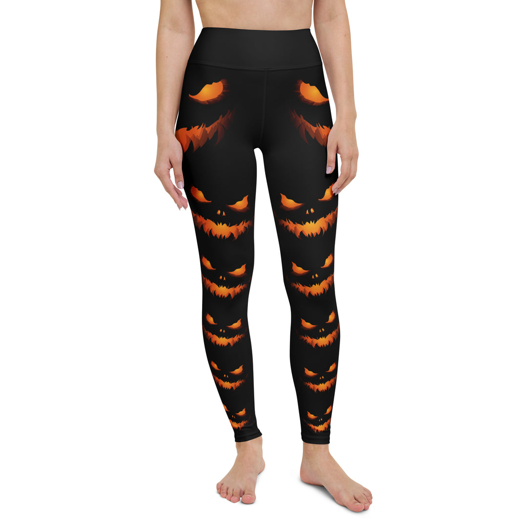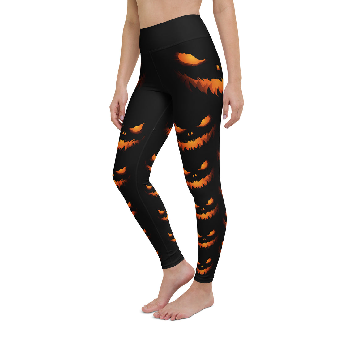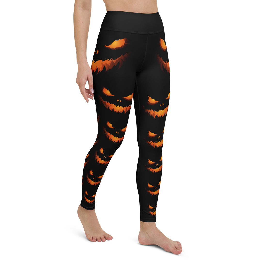 Sway into spectral serenity with Night of Pumpkins Yoga Leggings, a mystical array of pumpkin visages that flicker across the fabric like a haunted glow. These leggings showcase an intricate pattern with sinister, carved smiles and piercing eyes, layered to create a eerie, festive vibe. Designed with moisture-wicking, four-way stretch fabric, they provide support and ease during yoga or meditation. Ideal for spooky workouts, Halloween events, or cozy nights, they blend comfort with chilling charm. Flow with fright and let your yoga leggings spook with a playful shiver!