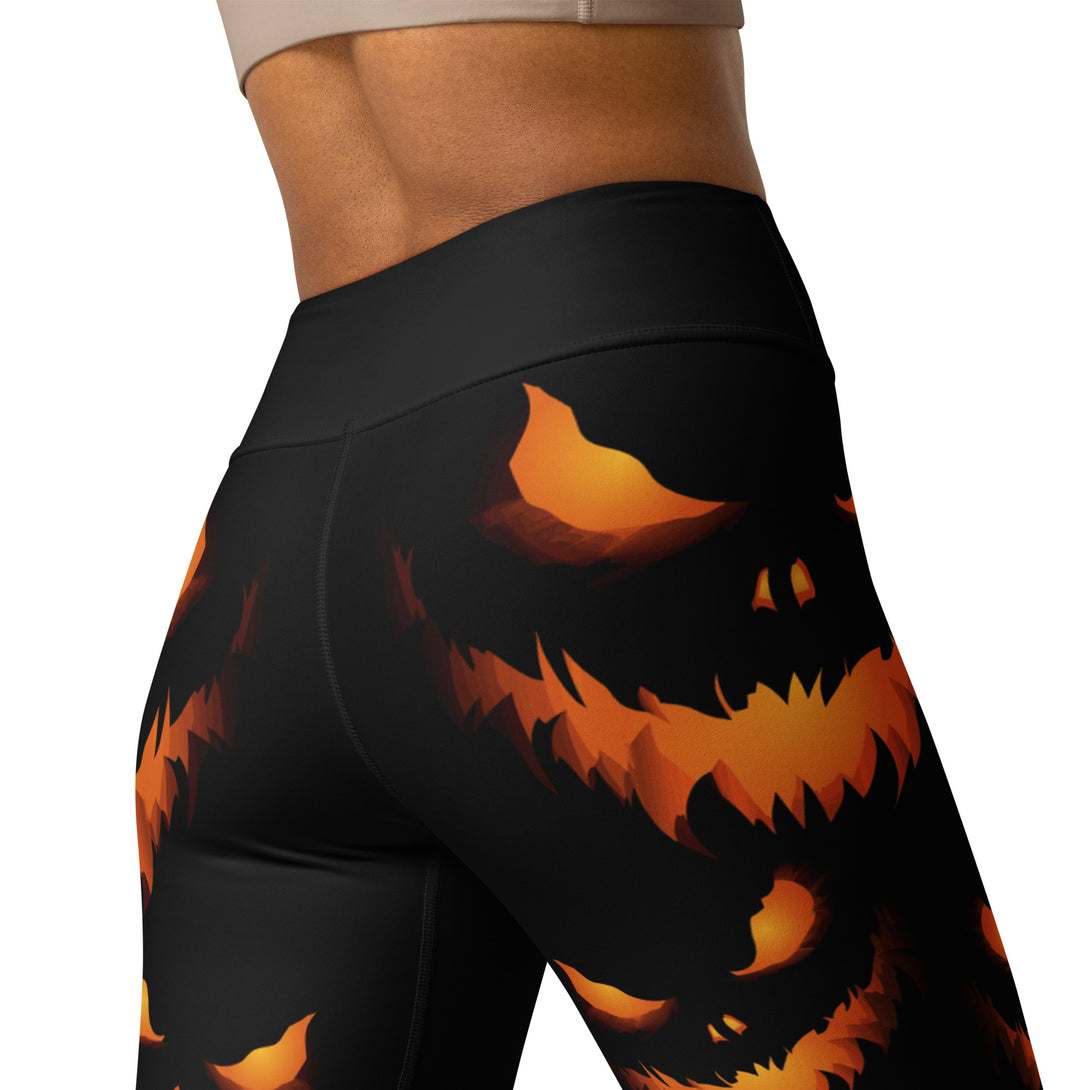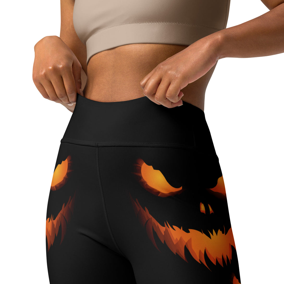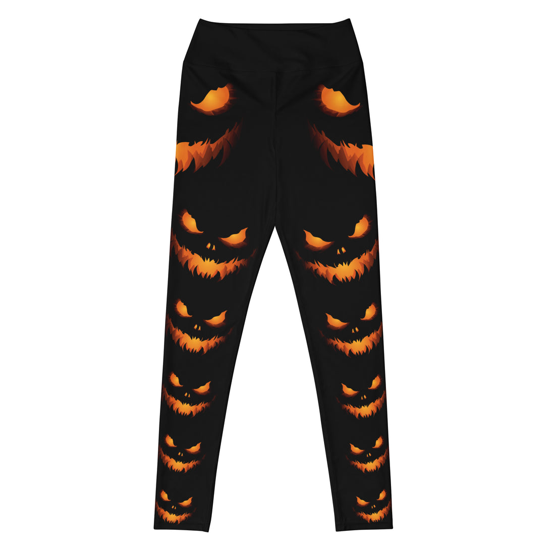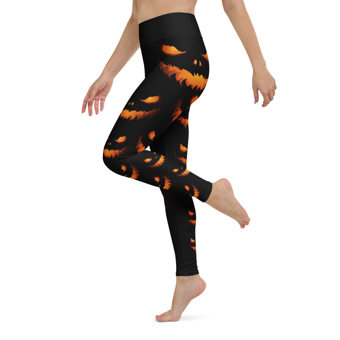 Sway into spectral serenity with Night of Pumpkins Yoga Leggings, a mystical array of pumpkin visages that flicker across the fabric like a haunted glow. These leggings showcase an intricate pattern with sinister, carved smiles and piercing eyes, layered to create a eerie, festive vibe. Designed with moisture-wicking, four-way stretch fabric, they provide support and ease during yoga or meditation. Ideal for spooky workouts, Halloween events, or cozy nights, they blend comfort with chilling charm. Flow with fright and let your yoga leggings spook with a playful shiver!